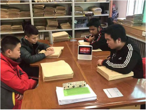 2019年5月19日全国助残日,百度宣布与多家盲人公益机构联合发起“百度AI助盲行动”,利用小度人工智能音箱,帮助视障人群解决因视力不足导致的各种行动问题,并迅速在广州、成都、郑州、西安、太原、青岛6城落地完成盲人按摩店AI试点改造,提升盲人的工作与生活质量。2019年10月,“百度AI助盲行动”第二阶段启动。盲人按摩店AI改造落地到全国40多个城市,惠及100多家盲人按摩店。同时,百度还与各省份盲童学校、特殊教育学校进行合作,通过人工智能的力量为视障儿童营造更便利的学习与生活环境。西安盲哑学校的改造,正是百度AI助力盲童学生们的又一站点。